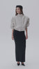 Kurtka ze skóry naturalnej w odcieniu jasnego beżu. Oversize’owy krój z szerokimi rękawami i subtelnym marszczeniem przy ramionach, wysoka stójka zapinana na zatrzaski podkreśla minimalistyczny charakter projektu.